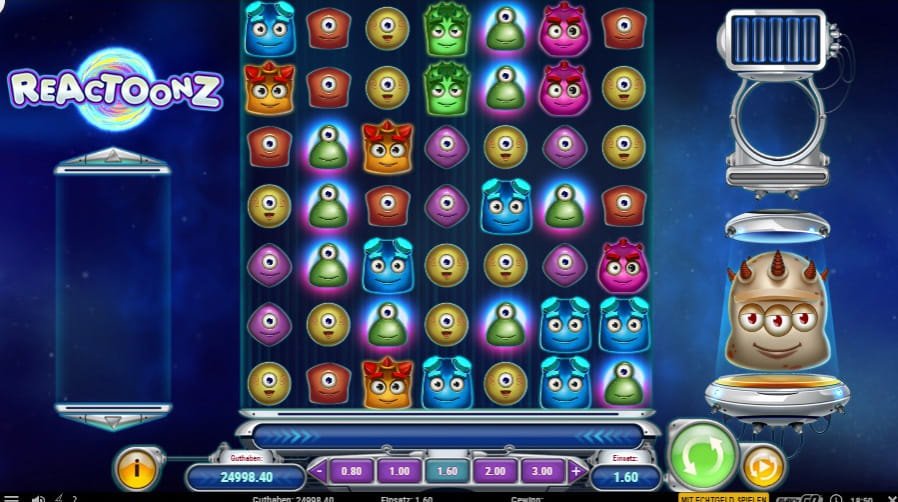 Übrigens stehen auch viele Titel zur Verfügung, die mit Bonus-Features ausgestattet wurden. Bei dem Spiel „Reactoonz“ beispielsweise drehen sich die Walzen nicht auf klassische Weise, sondern es fallen Symbolsteine ins Bild. In Bonusrunden kämpfst du gegen Angreifer – und kannst dir so überaus attraktive Gewinne verschaffen.