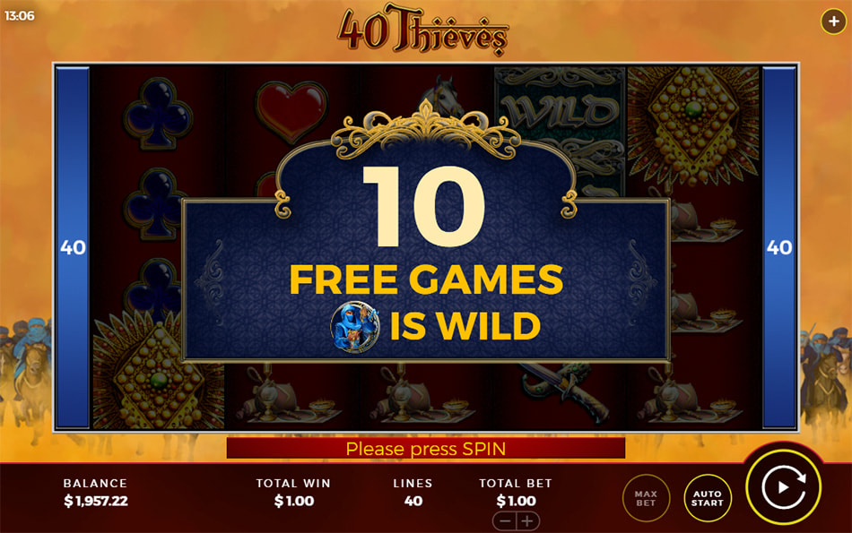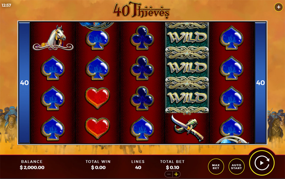 Der 40 Thieves Slot entführt euch in die Welt von 1001 Nacht. Die Atmosphäre des Spiels ist durch orientalische Grafiken und passende Soundeffekte geprägt. Gespielt wird auf 5 Walzen mit insgesamt 40 Gewinnlinien, die fest eingestellt sind. Das bedeutet, dass ihr immer mit allen Linien spielt, was eure Gewinnchancen maximiert.