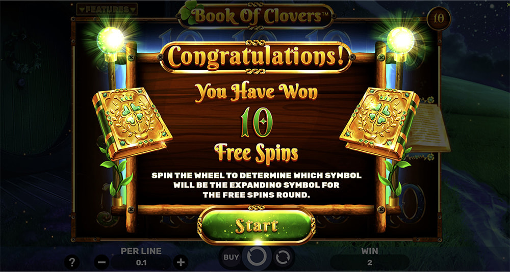 Book of Clovers ist ein Online Slot von Spinomenal mit 96,14% RTP. Er hat 10 Gewinnlinien auf 5 Walzen und er bietet Freispiele, expandierende Symbole und Wild-Symbole. Hier findet ihr die besten Book of Clovers Online Casinos, um diesen Slot entweder mit Echtgeld mit 1€ Einsatz zu spielen oder bei einigen Anbietern auch kostenlos als Demo zu testen.
