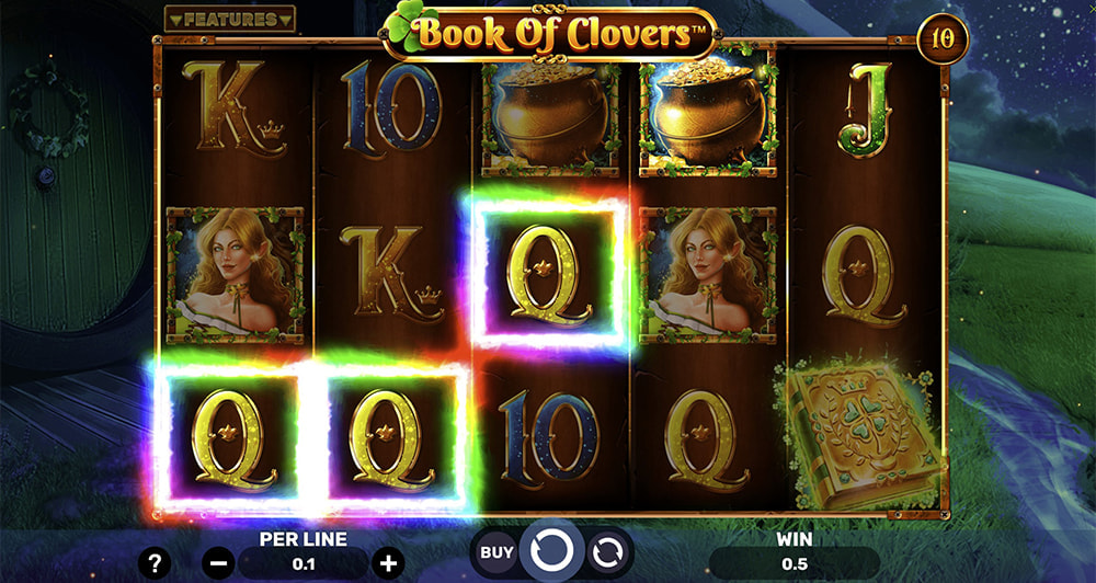Book of Clovers entführt euch in eine grüne, irische Landschaft voller Magie und Glückssymbole. Das Spiel läuft auf einem 5-Walzen-3-Reihen-Raster mit 10 festen Gewinnlinien und bietet eine klassische, leicht verständliche Spielmechanik.