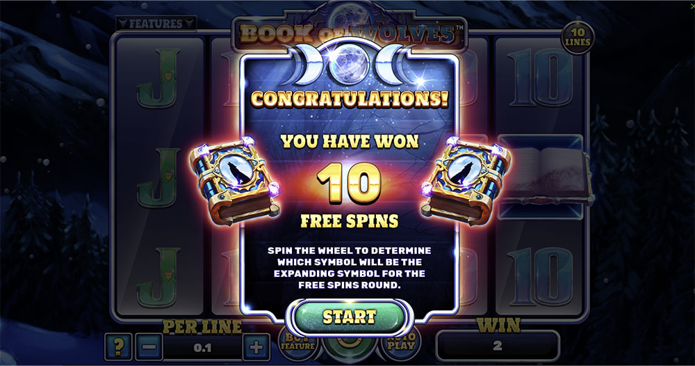 Die Bonusrunde in Book of Wolves wird durch das Buch-Symbol ausgelöst. Erscheinen mindestens drei Bücher auf den Walzen, starten 10 Freispiele. Vor Beginn wird ein zufälliges Symbol als expandierendes Spezialsymbol gewählt. Wenn dieses Symbol während der Freispiele auf den Walzen erscheint, dehnt es sich auf die gesamte Walze aus – aber nur, wenn eine Gewinnkombination möglich ist.