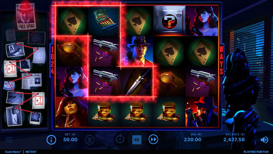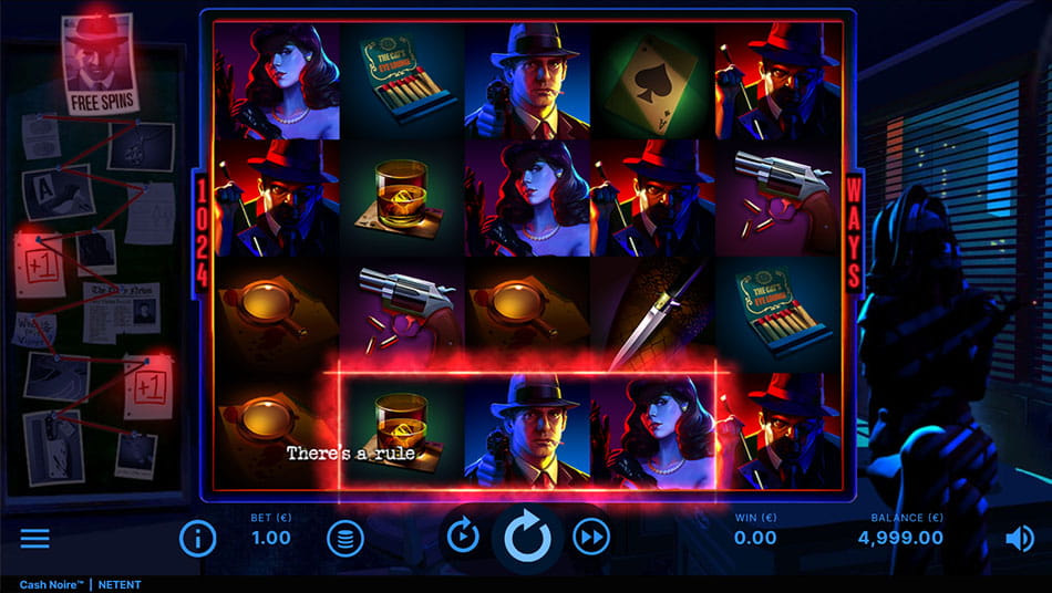 Um in die Bonusrunde von Cash Noire zu gelangen, müssen Spieler spezielle Hinweissymbole auf den Walzen landen. Diese aktivieren eine spannende Verfolgungsjagd, in der man durch das Sammeln weiterer Hinweise die Freispiele freischalten kann.