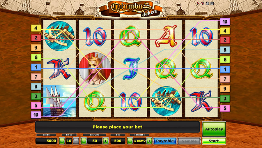 Columbus deluxe ist ein Online Spielautomat von Novoline mit einer RTP Quote von 95,02%. Der Novoline Slot hat 10 Gewinnlinien auf 5 Walzen und bietet Wilds, Scatter, Freispiele und Gamble-Funktion. Hier findet ihr die besten Columbus deluxe Online Casinos, um diesen Slot entweder mit Echtgeld mit 1€ Einsatz zu spielen oder bei einigen Anbietern auch kostenlos als Demo zu testen.