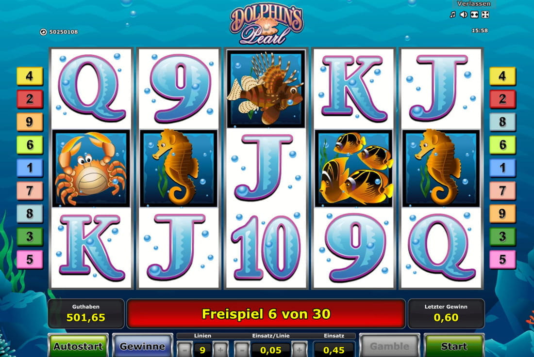 Der Dolphins Pearl Slot entführt die Spieler in die faszinierende Unterwasserwelt, wo Delfine, Perlen und andere Meerestiere die Hauptrolle spielen. Dieser beliebte Slot von Novoline bietet ein klassisches Gameplay mit einer tiefen thematischen Darstellung. Mit 5 Walzen und 9 Gewinnlinien setzt der Spielautomat auf eine einfache, aber fesselnde Spielmechanik, die Spieler aller Erfahrungsstufen anspricht.