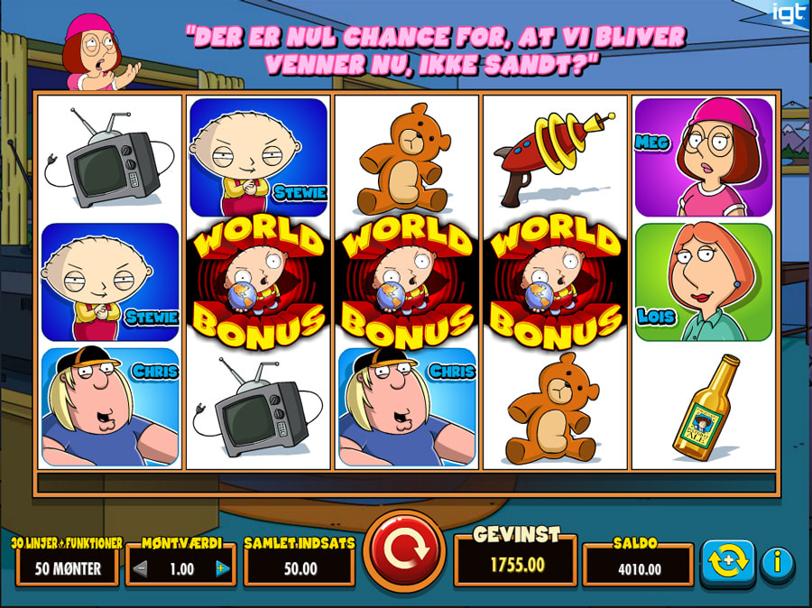 Ein Bonus ist oft ideal für das Spiel, besonders wenn ihr eine Einzahlung auf euer Konto vornehmt. Wir empfehlen euch jedoch, euch die Bedingungen für einen Family Guy online Echtgeld Bonus genau anzuschauen. Für mehr Details zum Family Guy Bonus, solltet ihr immer in die Bonusbedingungen auf der jeweiligen Webseite nachlesen. Wir können aber festhalten, dass sich die Family Guy Spielbanken sehr gut im Casino Bonus Vergleich geschlagen haben.