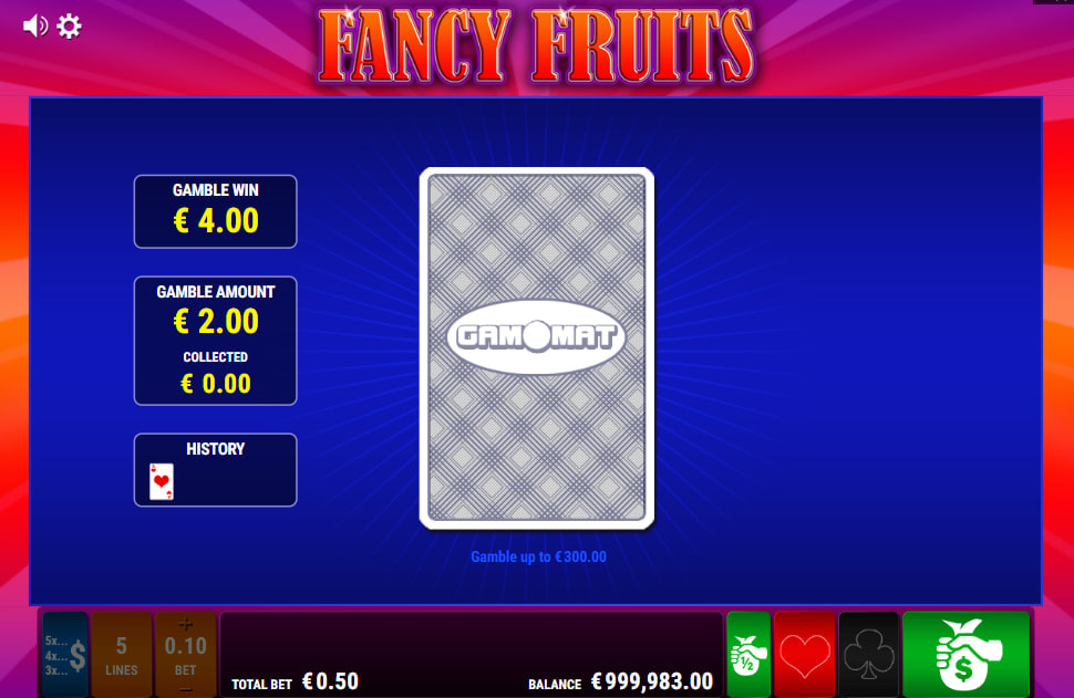 Der Spielautomat verfügt über 5 Walzen und 5 feste Gewinnlinien, was typisch für klassische Slots ist. Die einfache Konfiguration macht es ideal für Anfänger und erfahrene Spieler, die das Wesentliche des Spiels genießen möchten. Trotz seiner Simplizität, bietet Fancy Fruits Slot Spannung und Unterhaltung bei jedem Spin.