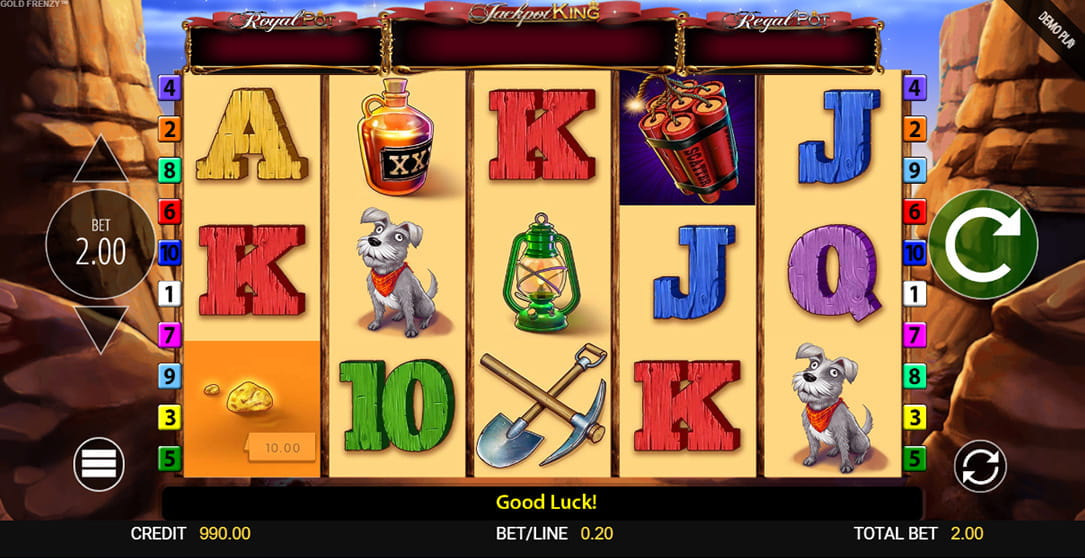 Im Gold Frenzy Slot von Merkur finden sich verschiedene Symbole, die in zwei Kategorien unterteilt werden können: die höherwertigen und die niedrigerwertigen Symbole. Zu den höherwertigen Symbolen gehören Goldnuggets, Schaufeln, Laternen und der treue Hund des Goldgräbers, wobei der Hund das am höchsten zahlende Symbol darstellt.
