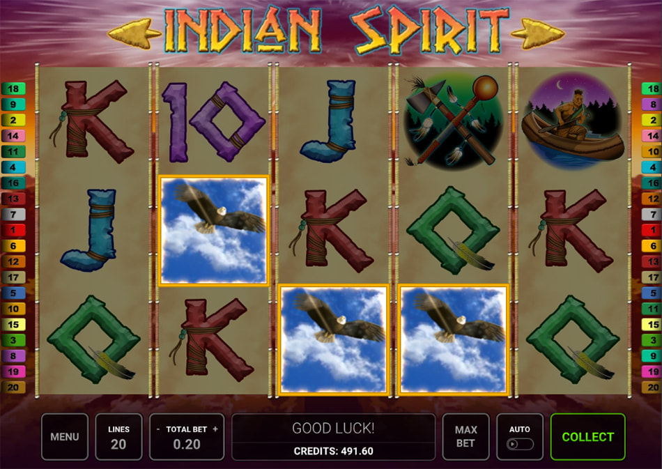 Indian Spirit ist ein Online Spielautomat von Novoline mit einer RTP Quote von 95,34%. Der Novoline Slot hat 20 Gewinnlinien auf 5 Walzen und bietet Freispiele, Wild-Symbol und Scatter-Symbol. Hier findet ihr die besten Indian Spirit Online Casinos, um diesen Slot entweder mit Echtgeld mit 1€ Einsatz zu spielen oder bei einigen Anbietern auch kostenlos als Demo zu testen.