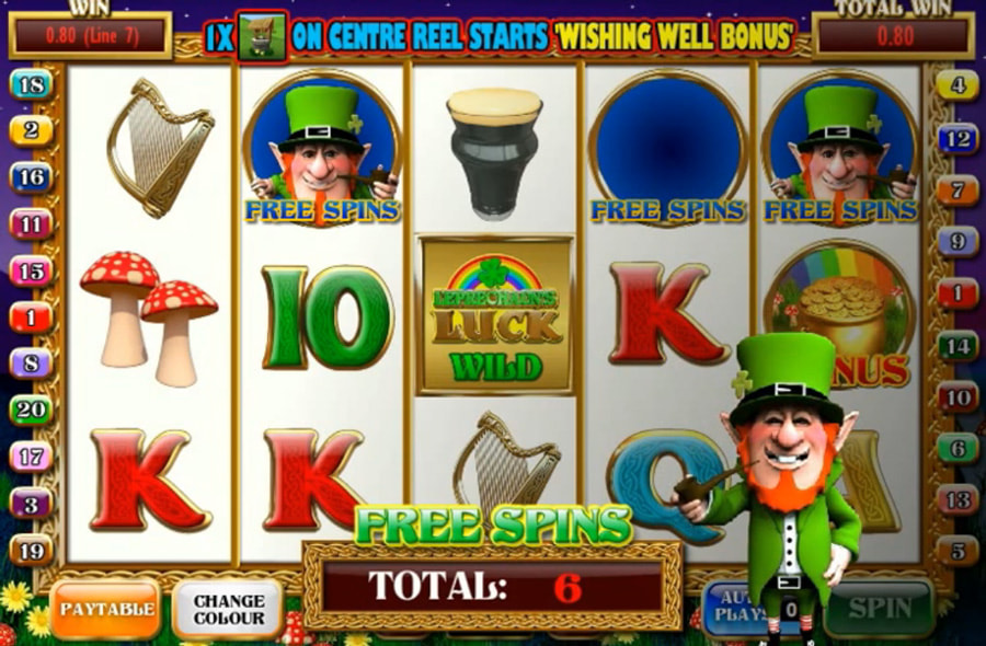 Leprechauns Luck ist ein Online Spielautomat von Ash Gaming mit einer RTP Quote von 88,01%. Der Ash Gaming Slot hat 20 Gewinnlinien auf 5 Walzen und bietet Freispiele, einen Jackpot und ein Wunschbrunnen-Bonusspiel. Hier findet ihr die besten Leprechauns Luck Online Casinos, um diesen Slot entweder mit Echtgeld
