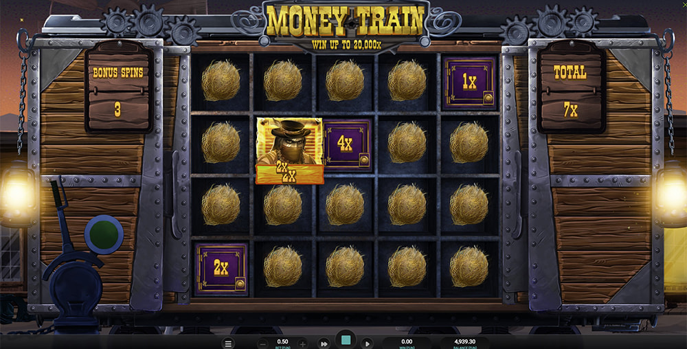 Money Train nimmt euch mit auf einen Raubzug durch den Wilden Westen. Der Slot läuft auf 5 Walzen mit 4 Reihen und bietet 40 feste Gewinnlinien, die für Spannung bei jeder Drehung sorgen. Die Money Cart-Bonusrunde wird durch drei oder mehr Bonus-Symbole ausgelöst.