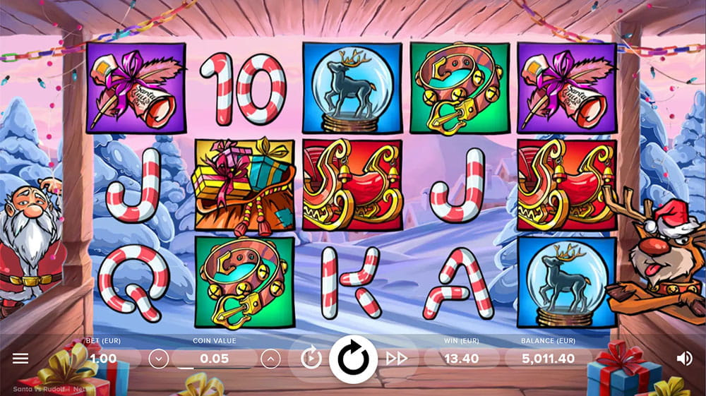 Der Santa vs. Rudolf Slot bringt ein festliches Thema auf die Bildschirme, bei dem Santa und sein treues Rentier Rudolf im Mittelpunkt stehen. Diese unterhaltsame Weihnachtsgeschichte wird durch eine farbenfrohe Grafik und eine passende musikalische Untermalung lebendig.