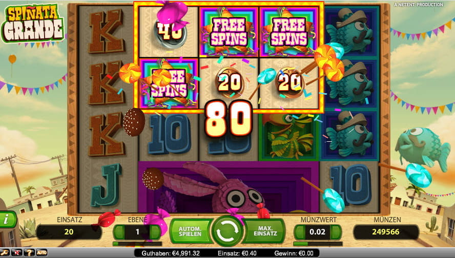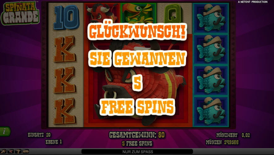 Bei Spinata Grande werden Freispiele durch das Erscheinen des Mini-Slot-Symbols ausgelöst, welches sich zu einem kleinen Spielautomaten verwandelt und die Möglichkeit bietet, zusätzliche Free Spins und Sofortgewinne zu erhalten. Dieses Feature sorgt für eine aufregende Abwechslung im Spielverlauf.