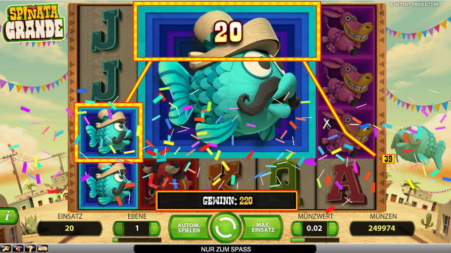 Wenn ihr von Spinata Grande begeistert seid und nach thematisch ähnlichen Spielen sucht, solltet ihr Piñata Fiesta ausprobieren. Dieser Slot bietet ein lebendiges, festliches Thema, das Spieler in eine fröhliche und bunte Welt entführt, ähnlich dem beliebten NetEnt Spiel.