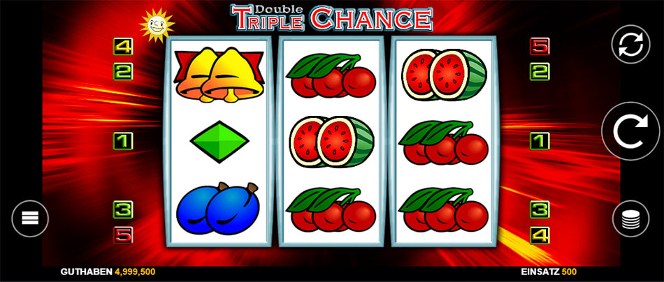 Triple Chance ist ein Online Spielautomat von Merkur Gaming mit einer RTP Quote von 96,00%. Der Merkur Gaming Slot hat 5 Gewinnlinien auf 3 Walzen und bietet ein Rewin Feature. Hier findet ihr die besten Triple Chance Online Casinos, um diesen Slot entweder mit Echtgeld mit 1€ Einsatz zu spielen oder bei einigen Anbietern auch kostenlos als Demo zu testen.