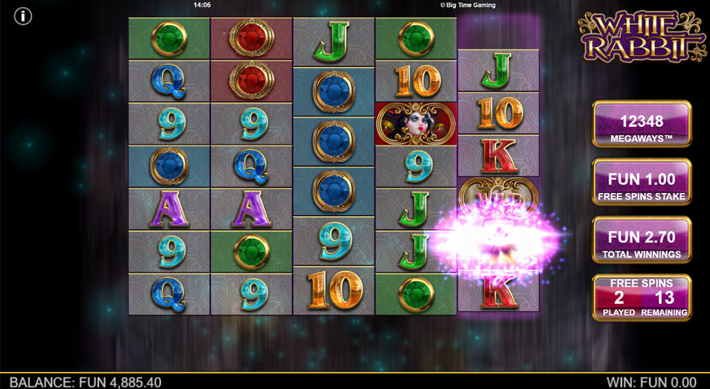 Bei White Rabbit führt das Erscheinen von drei oder mehr Scatter-Symbolen, dargestellt durch den weißen Hasen, zur Auslösung der Freispielrunde. In dieser Runde erhaltet ihr anfangs 15 Freispiele, die durch spezielle Symbole während der Runde weiter erhöht werden können.