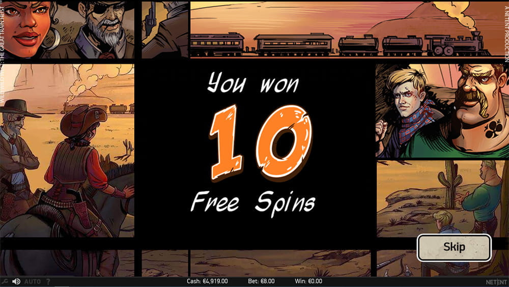In diesem Spiel gibt es eine Vielzahl von Symbolen, darunter Zugräuber und Cowboys als höher zahlende Symbole. Die niedriger zahlenden Symbole sind klassische Kartensymbole wie Buben und Asse. Diese bieten eine reiche Vielfalt an Gewinnmöglichkeiten.